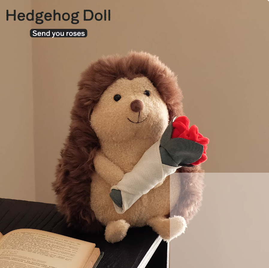 Add Ons: Hedgehog Holding Rose Plushie (~26cm)