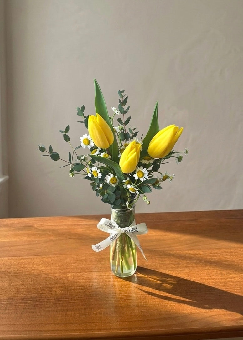 Thea in a Jar/ Vase - Tulips and Tanacetum Daisy